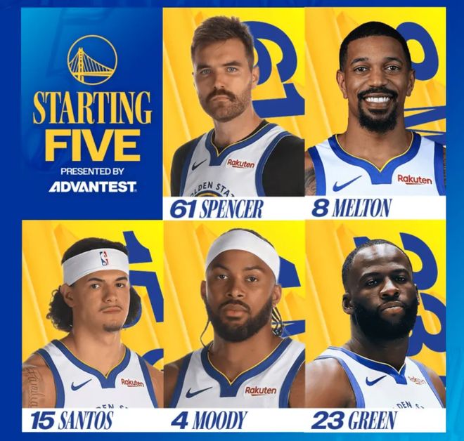 首发阵容方面,湖人队这边,东契奇缺阵,艾顿因右膝酸痛也缺席,里夫斯依旧替补出战,雷迪克教练排出的首发五人组为:勒布朗-詹姆斯、马库斯-斯马特、杰克-拉拉维亚、八村垒、贾克森-海斯。;勇士这边,库里、巴特勒、波神缺阵,首发阵容则为:帕特-斯潘塞、丹东尼-梅尔顿、摩西-穆迪、吉-桑托斯、德雷蒙德-格林。