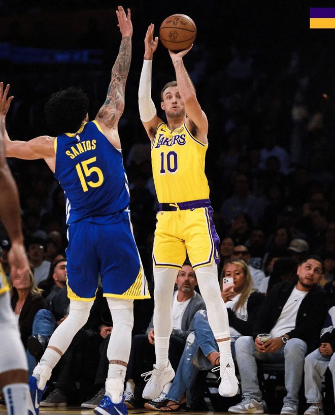 值得一提的是,湖人全队14次助攻就出现了多达13次失误,勇士也出现12次失误,半场三分27中5、命中率仅18.5%,但仍然领先湖人。